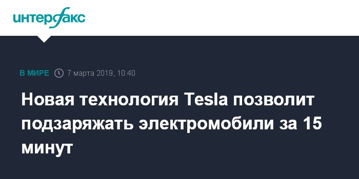 Москва. 7 марта. INTERFAX.RU - Американский производитель электромобилей Tesla Inc утверждает, что его новая технология позволит сократить время подзарядки электрокаров до 15 минут.