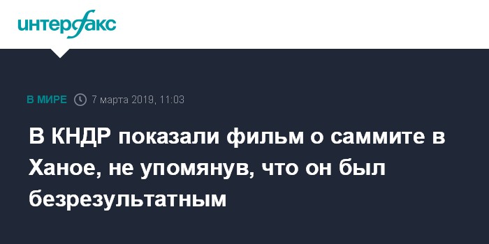 Москва. 7 марта. INTERFAX.RU - Северокорейское государственное телевидение показало документальный фильм о саммите президента США Дональда Трампа и лидера КНДР Ким Чен Ына, но не стало рассказывать о том, что оба лидера не смогли достигнуть соглашения на встрече, сообщает в четверг агентство Associated Press.