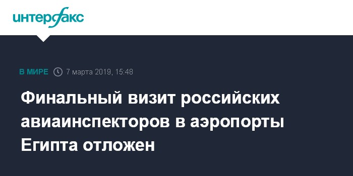 "К сожалению, российские инспекторы по авиабезопасности не смогли посетить аэропорты Хургады и Шарм-эш-Шейха в конце февраля. Визит пришлось перенести по техническим причинам", - сказал источник.