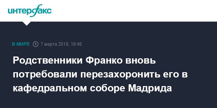 При этом испанская пресса отмечает, что семья Франко обращается к правительству с просьбой воздержаться от каких-либо действий, связанных с эксгумацией его останков, не принимая во внимание судебного решения.