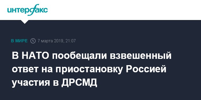 В НАТО пообещали взвешенный ответ на приостановку Россией участия в ДРСМД