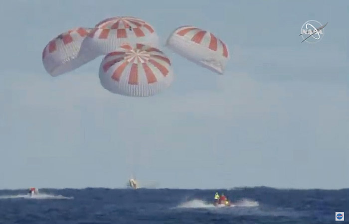 Американский корабль Crew Dragon успешно приводнился в Атлантике