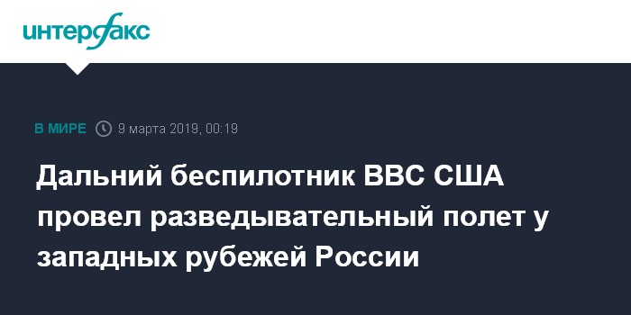 Как сообщалось, 6 марта все тот же беспилотник ВВС США с бортовым номером 10-2043 совершил многочасовой разведывательный полет вблизи Крыма и Кубани. Перед этим он в течение семи часов вел разведку вдоль линии разграничения в Донбассе. В ходе выполнения задания беспилотник, по меньшей мере, шесть раз подлетал на расстояние 35-60 км к граничащим с Украиной Белгородской, Воронежской и Ростовской областям России.