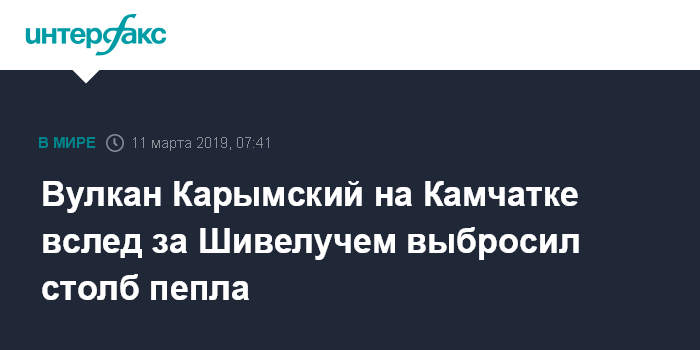 Москва. 11 марта. INTERFAX.RU - Вулкан Карымский выбросил столб пепла на высоту до 2,5 км над уровнем моря, сообщает в понедельник Камчатская группа реагирования на вулканические извержения (KVERT) Института вулканологии и сейсмологии Дальневосточного отделения Российской академии наук (РАН).