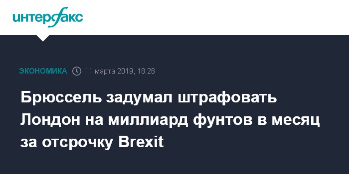 Брюссель задумал штрафовать Лондон на миллиард фунтов в месяц за отсрочку Brexit