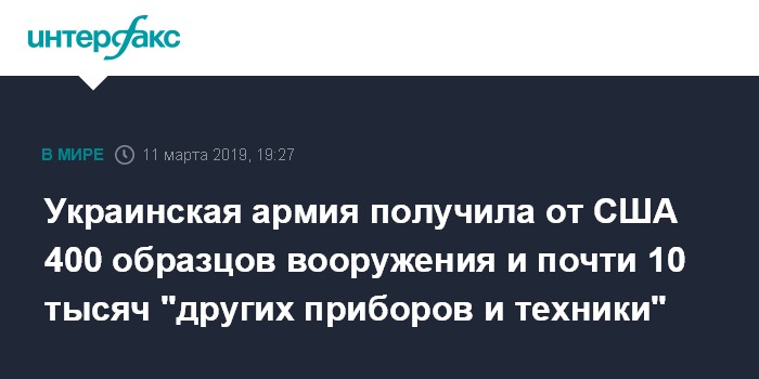 В сообщении отмечается, что в рамках предоставления материально-технической помощи от США в украинские воинские части поставили около 400 единиц образцов вооружения и техники и более 9,5 тыс. других приборов и техники.
