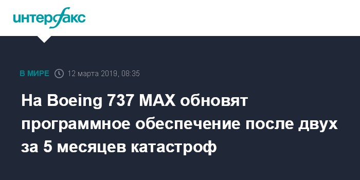 Москва. 12 марта. INTERFAX.RU - Boeing планирует в ближайшее время представить обновленное программное обеспечение Boeing 737 MAX, говорится в сообщении компании.