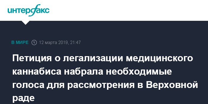 Москва. 12 марта. INTERFAX.RU - Петиция за легализацию медицинского каннабиса, размещенная на сайте Верховной рады Украины, за 42 дня набрала необходимые для ее рассмотрения 25 тысяч голосов.