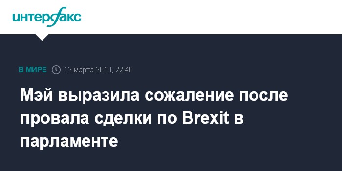 Москва. 12 марта. INTERFAX.RU - Премьер-министр Великобритании Тереза Мэй выразила сожаление в связи с тем, что палата общин Великобритании не поддержала соглашение по Brexit. Ее выступление транслировало британское телевидение.