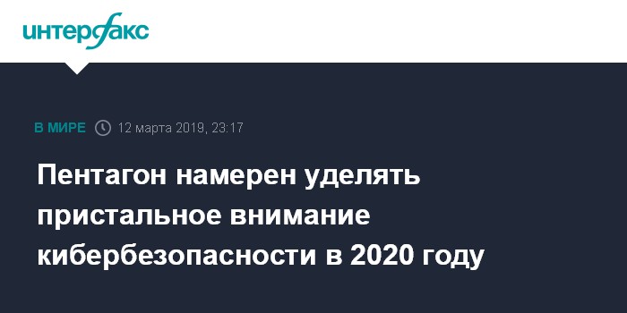 Москва. 12 марта. INTERFAX.RU - В министерстве обороны США заявили во вторник о стремлении учесть в бюджетном запросе на 2020 финансовый год необходимость создания современного оружия и борьбы в киберпространстве.