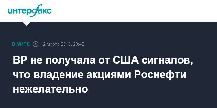 ВР не получала от США сигналов, что владение акциями Роснефти нежелательно