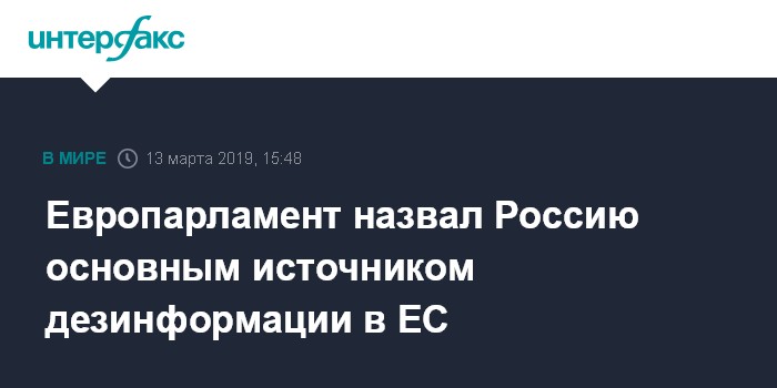 Европарламент назвал Россию основным источником дезинформации в ЕС