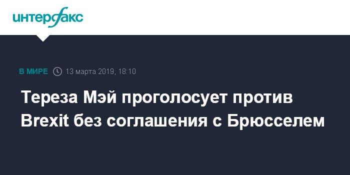 Москва. 13 марта. INTERFAX.RU - Премьер-министр Великобритании Тереза Мэй намерена проголосовать против выхода Великобритании из ЕС без соглашения с Брюсселем, сообщает газета The Guardian.