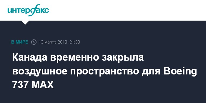 В нем отмечается, что запрет распространяется на прибытие, отправление этих авиалайнеров, а также на их полеты через воздушное пространство Канады.