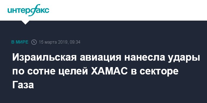 Москва. 15 марта. INTERFAX.RU - Не менее ста целей в секторе Газа, имеющих отношение к террористической группировке ХАМАС, атаковали ВВС Израиля в пятницу утром в ответ на предпринятый оттуда ракетный обстрел, сообщает интернет-портал израильской газеты The Jerusalem Post .
