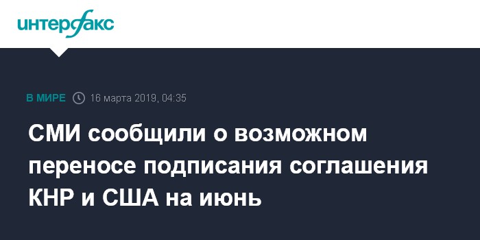 СМИ сообщили о возможном переносе подписания соглашения КНР и США на июнь