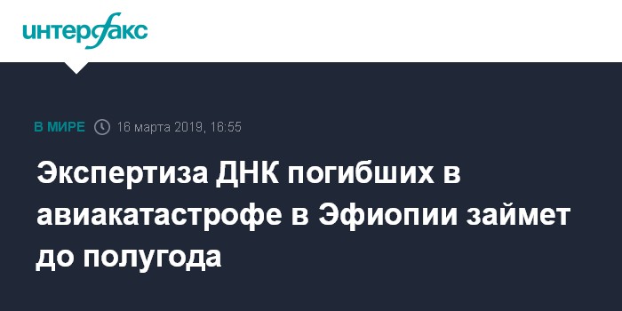 Экспертиза ДНК погибших в авиакатастрофе в Эфиопии займет до полугода