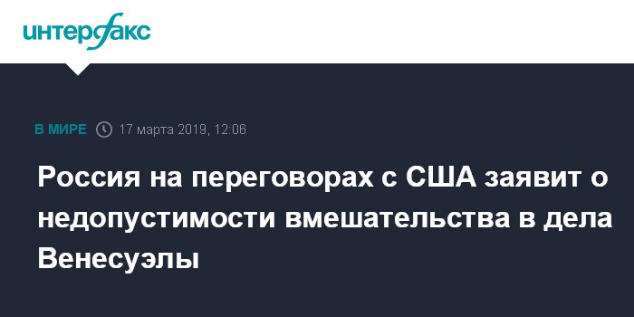 Россия на переговорах с США заявит о недопустимости вмешательства в дела Венесуэлы