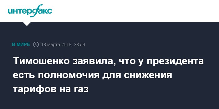 Тимошенко заявила, что у президента есть полномочия для снижения тарифов на газ