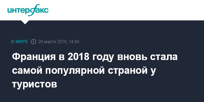 Франция в 2018 году вновь стала самой популярной страной у туристов