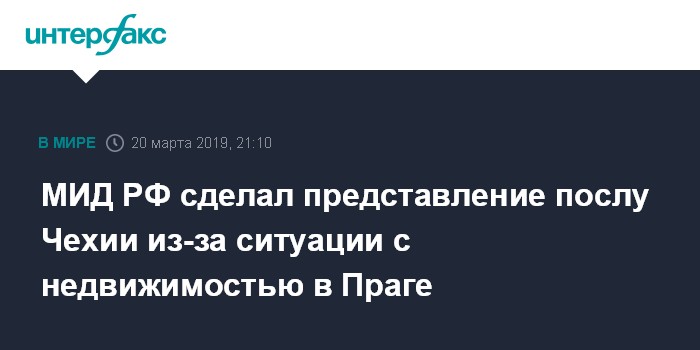 МИД РФ сделал представление послу Чехии из-за ситуации с недвижимостью в Праге