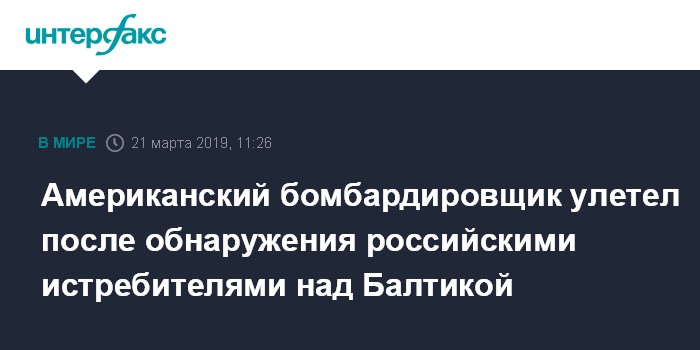 В сообщении Минобороны РФ 15 марта говорилось, что В-52 ВВС США совершил пролет с включенным транспондером над нейтральными водами Балтийского моря параллельным курсом к территориальным водам Российской Федерации.