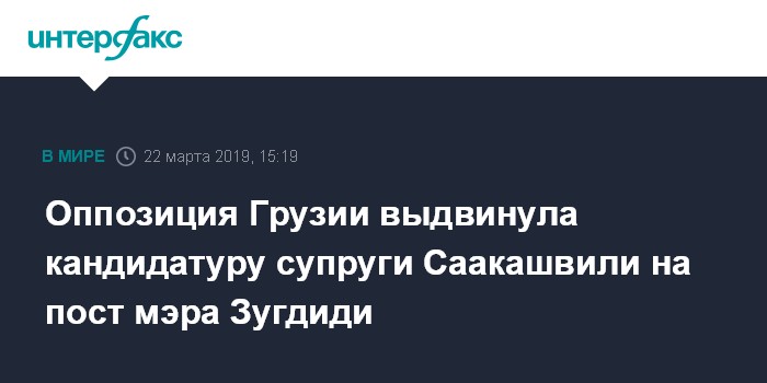 Москва. 22 марта. INTERFAX.RU - Супруга экс-президента Грузии Михаила Саакашвили Сандра Руловс намерена в мае в качестве кандидата принять участие во внеочередных выборах мэра Зугдиди, административного центра края Самегрело-Верхняя Сванетия на западе Грузии.