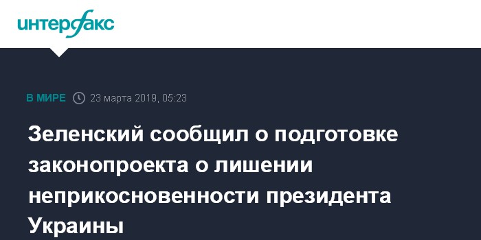 Москва. 23 марта. INTERFAX.RU - Кандидат в президенты Украины Владимир Зеленский предлагает одним законом снять неприкосновенность с президента страны, народных депутатов и судей.