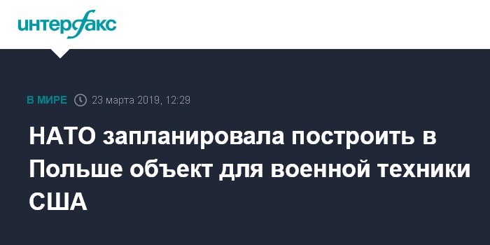 Москва. 23 марта. INTERFAX.RU - НАТО планирует в течение двух лет построить в Польше складской объект для американской военной техники, сообщает газета The Wall Street Journal со ссылкой на генсека НАТО Йенса Столтенберга.