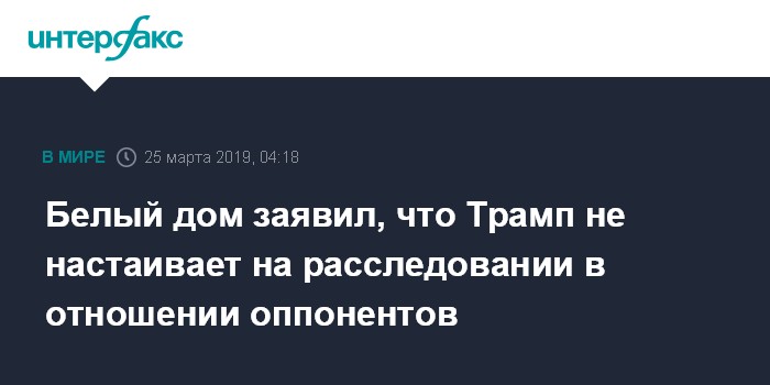 Белый дом заявил, что Трамп не настаивает на расследовании в отношении оппонентов