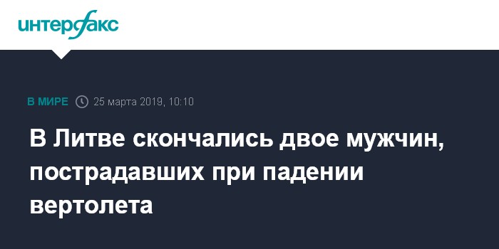 Москва. 25 марта. INTERFAX.RU - Двое мужчин, находившиеся в вертолете, разбившемся в минувшую пятницу на аэродроме в литовском Барисяй, скончались.