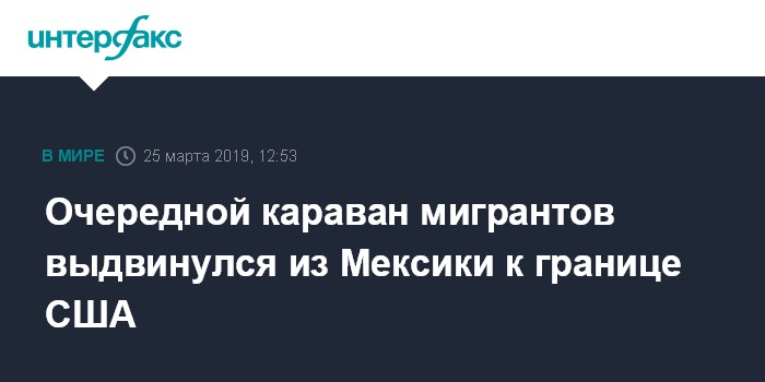 Москва. 25 марта. INTERFAX.RU - Еще один караван иммигрантов из Центральной Америки начал двигаться в сторону США из южной Мексики, сообщили в понедельник в мексиканском Национальном институте миграции.