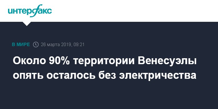 Москва. 26 марта. INTERFAX.RU - Второе за последнее время массовое отключение электричества в ночь на вторник оставило без света 88% территории Венесуэлы, сообщает местный телеканал NTN24.