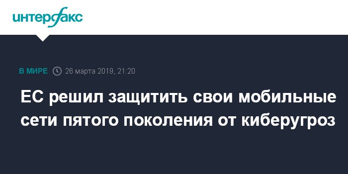 Москва. 26 марта. INTERFAX.RU - Европейский союз готовится обезопасить свои будущие мобильные сети пятого поколения (5G) от возможных рисков, связанных, в частности, с растущим китайским технологическим присутствием в ЕС.