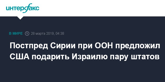 Постпред Сирии при ООН предложил США подарить Израилю пару штатов