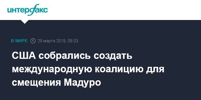 Москва. 29 марта. INTERFAX.RU - Соединенные Штаты продолжат делать все возможное для смещения президента Венесуэлы Николаса Мадуро, включая формирование международной коалиции против нынешних венесуэльских властей, заявил госсекретарь США Майк Помпео на конференции в Вашингтоне.
