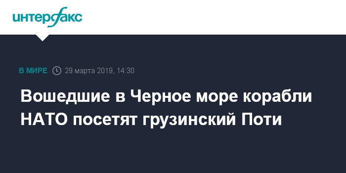 Москва. 29 марта. INTERFAX.RU - Вошедшие в акваторию Черного моря боевые корабли Второй постоянной военно-морской группы НАТО на следующей неделе посетят грузинский порт Поти.