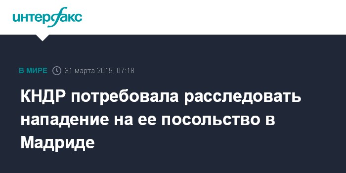 Москва. 31 марта. INTERFAX.RU - Пхеньян в воскресенье потребовал провести расследование факта нападения на посольство КНДР в Мадриде в феврале.