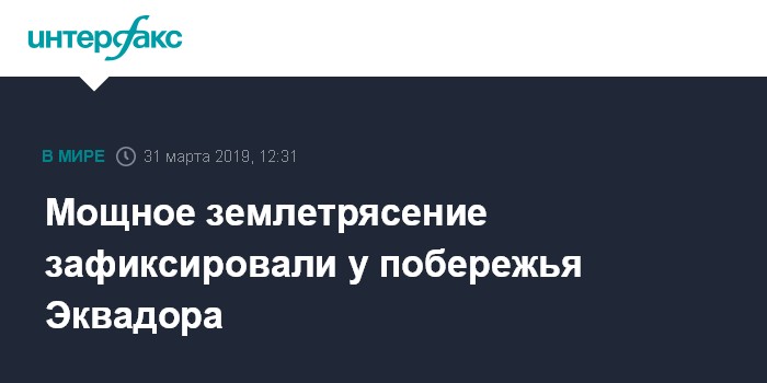 Москва. 31 марта. INTERFAX.RU - Землетрясение магнитудой 6,2 зафиксировала в воскресенье у побережья Эквадора геологическая служба США.