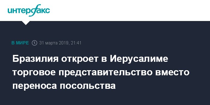 Ранее президент Бразилии неоднократно обещал перенести посольство своей страны из Тель-Авива в Иерусалим по примеру США и Гватемалы.