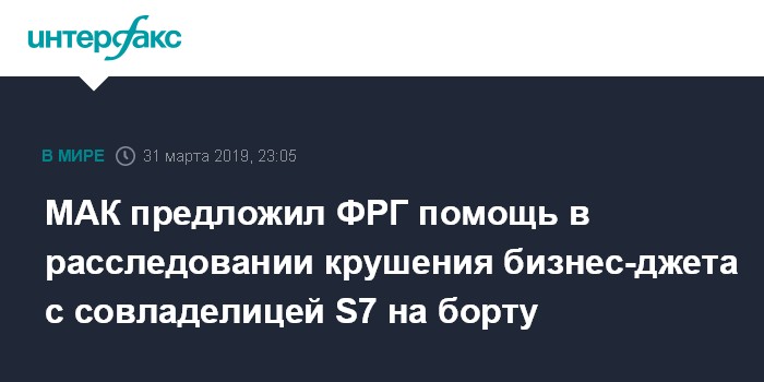 МАК предложил ФРГ помощь в расследовании крушения бизнес-джета с совладелицей S7 на борту