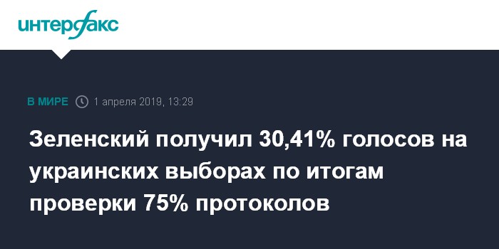 Зеленский получил 30,41% голосов на украинских выборах по итогам проверки 75% протоколов