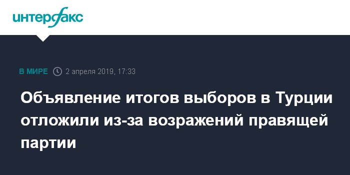 Москва. 2 апреля. INTERFAX.RU - Официальные итоги местных выборов в Турции будут известны лишь через неделю ввиду возражений правящей "Партии справедливости и развития", пишет во вторник британская газета The Guardian.