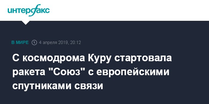 Москва. 4 апреля. INTERFAX.RU - Российская ракета-носитель "Союз СТ-Б" в четверг стартовала с космодрома Куру во Французской Гвиане. Она должна вывести на орбиту очередные четыре европейских коммуникационных спутника 03b, сообщила компания Arianespace, обслуживающая запуски с космодрома.