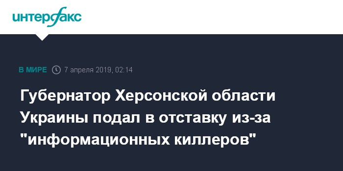 Губернатор Херсонской области Украины подал в отставку из-за "информационных киллеров"