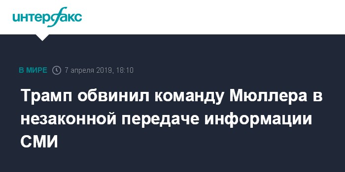 Москва. 7 апреля. INTERFAX.RU - Члены группы спецпрокурора Роберта Мюллера незаконно предоставляют прессе информацию, считает президент США Дональд Трамп.