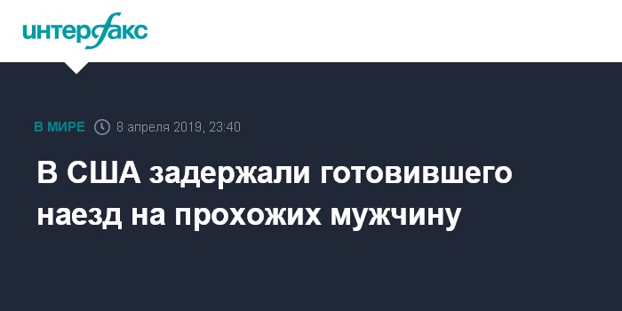 Москва. 8 апреля. INTERFAX.RU - Власти США задержали жителя штата Мэриленд, готовившего наезд на прохожих в Вашингтоне, сообщил телеканал Fox News .