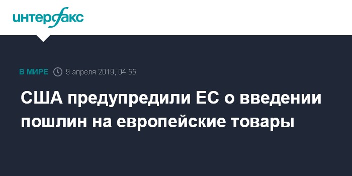 В заявлении отмечается, что введение дополнительных пошлин направлено на то, чтобы возместить ежегодный ущерб в 11 млрд долларов, который несут США от субсидирования Евросоюзом компании Airbus. Неблагоприятное воздействие этих субсидий на США подтверждается выводами ВТО (Всемирная торговая организация).