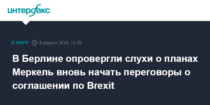 Москва. 9 апреля. INTERFAX.RU - Представитель немецкого правительства опроверг сообщения СМИ о том, что канцлер Германии Ангела Меркель якобы намерена возобновить переговоры об условиях соглашении по Brexit, сообщает во вторник британская газета The Guardian.