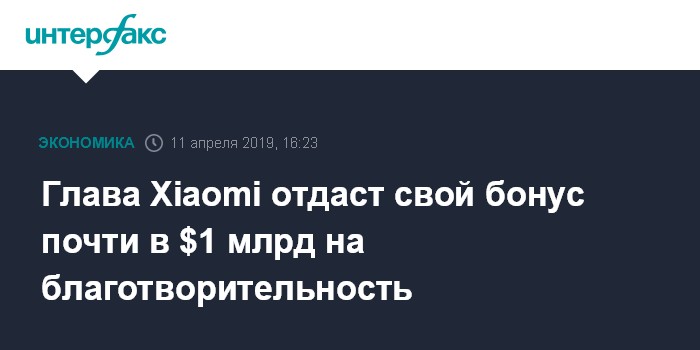 Глава Xiaomi отдаст свой бонус почти в $1 млрд на благотворительность